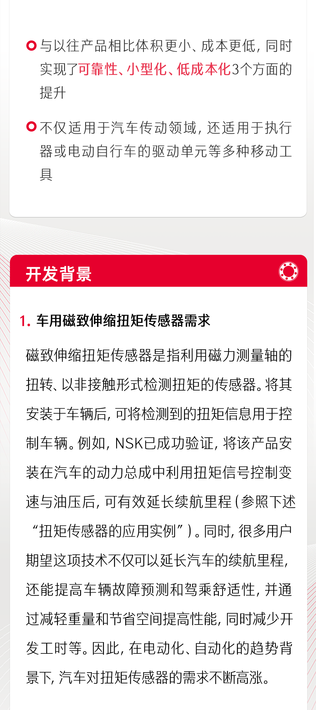 NSK成功開發(fā)車用磁致伸縮扭矩傳感器實(shí)用模型