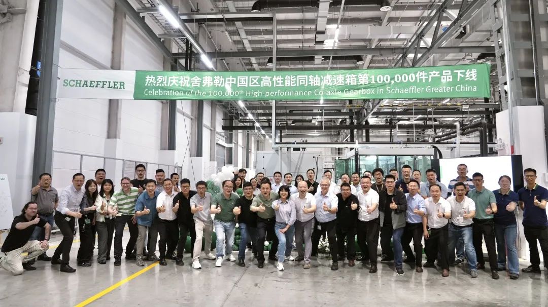 6月11日,舍弗勒在中國生產的第十萬套大扭矩同軸減速箱在太倉制造基地下線。客戶及核心供應商代表、舍弗勒電驅動事業部管理團隊、事業部及工廠相關同事共同見證了這一里程碑時刻。